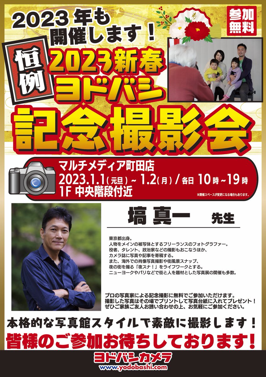 【ヨドバシ恒例新春撮影会2023年も開催】#ヨドバシ町田1F中央階段前にて1/1~1/2各日10:00~19:00まで開催❗️プロカメラマン塙真一先生による撮影会に無料でご参加いただけます✨撮影した写..
