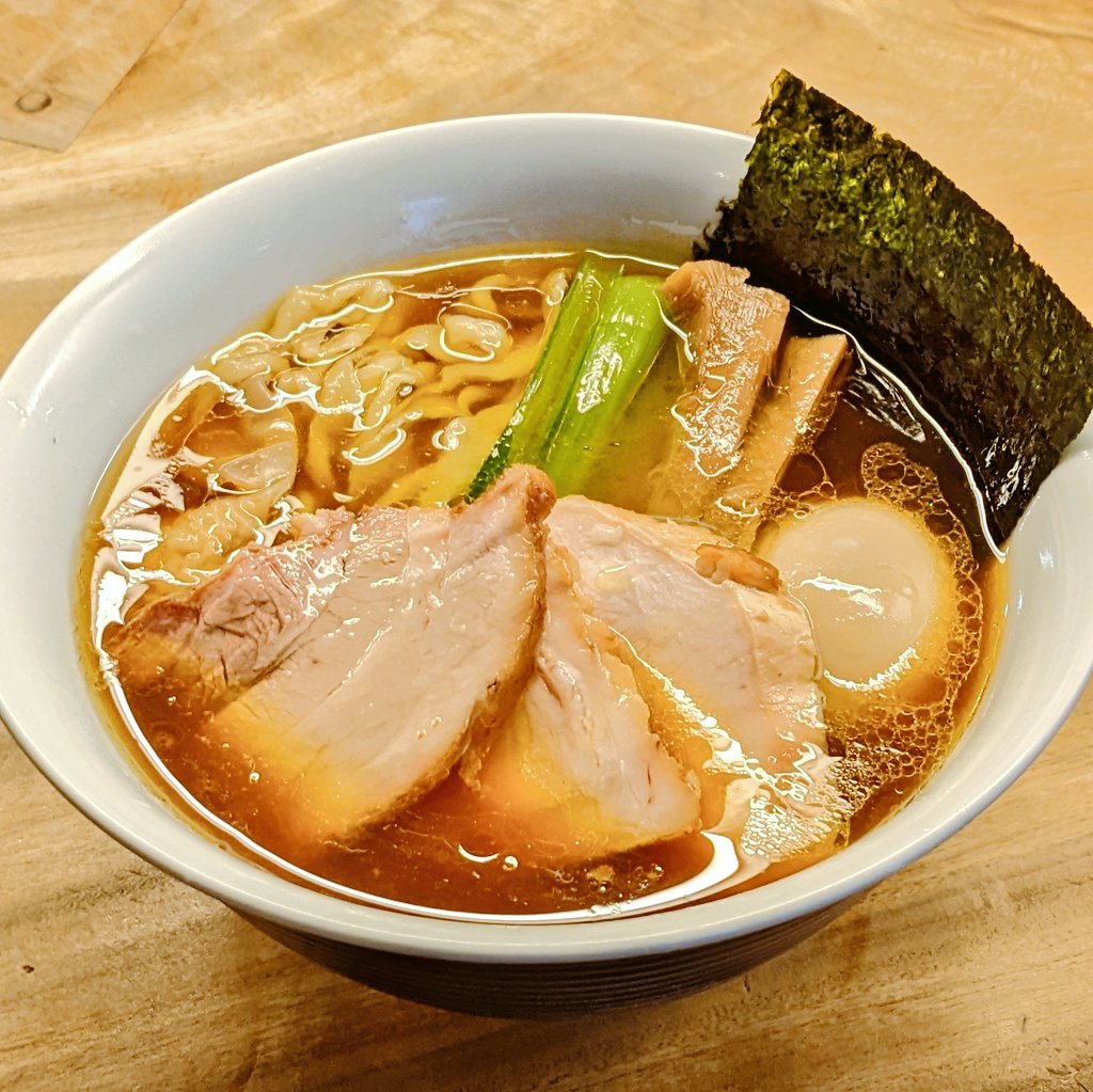 一番いちばん@町田特中華そばドヘンタイヒヤアツ前回のアツ(麺)アツ(スープ)Ver.ではなく長茹でしたピロピロ手揉み麺を冷水で〆てそのままスープへ投入するヒヤアツVer.✨いつもよりぬるめなスープに..