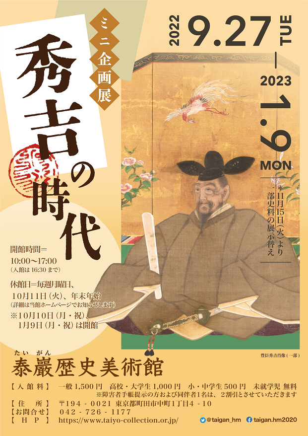 #泰巖歴史美術館では現在ミニ企画展#秀吉の時代を開催しています。2022年内の営業は、今週末12月25日(日)までとなります。残りわずかですのでお見逃しなく!皆様のお越しをお待ちしております!006