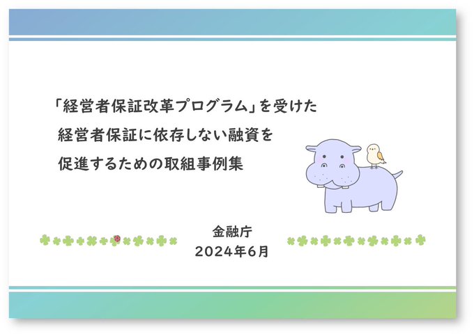 「経営者保証改革プログラム」を受け金融機関が実施した、経営者保証に依存しない融資を促進するための取組を収集し、事例集として公表しました。「経営者保証に関するガイドライン」の活用を含め、経営者保証に依存..