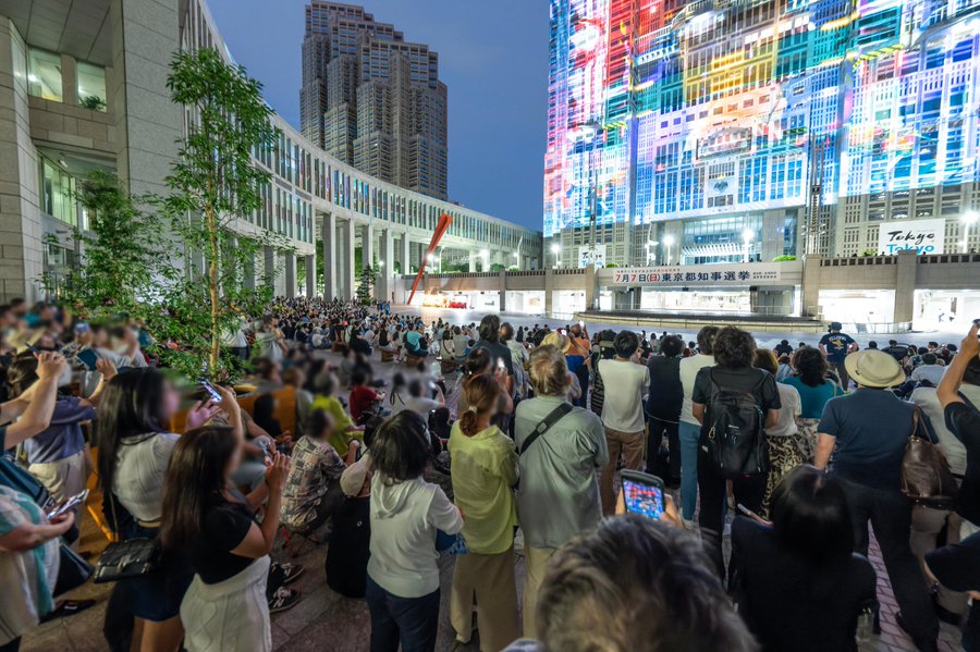 \この週末は都民広場にGO!/プロジェクションマッピングを観覧できる都民広場では、7/28(日)までの金・土・日・祝日(各日18時30分~22時00分)限定で、キッチンカーでのお酒や軽食の販売や、石川..