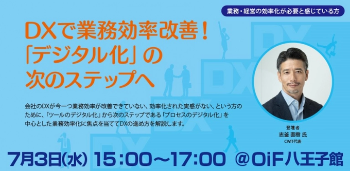 /プロセスのデジタル化へ!DXで業務効率化(参加費無料)\7月3日/無料(申込締切:7月2日)「#DX化をしているが、効率化されている実感が得られない」とお悩みの方は、この機会に次のステップへ進み、更..