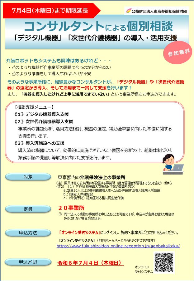 【#介護ロボット等に興味はありませんか?】デジタル機器や次世代介護機器の導入に向け、介護事業所の課題分析から効果的活用のための組織体制作りまでを支援する「個別相談」を実施します。コンサルタントが無料で..