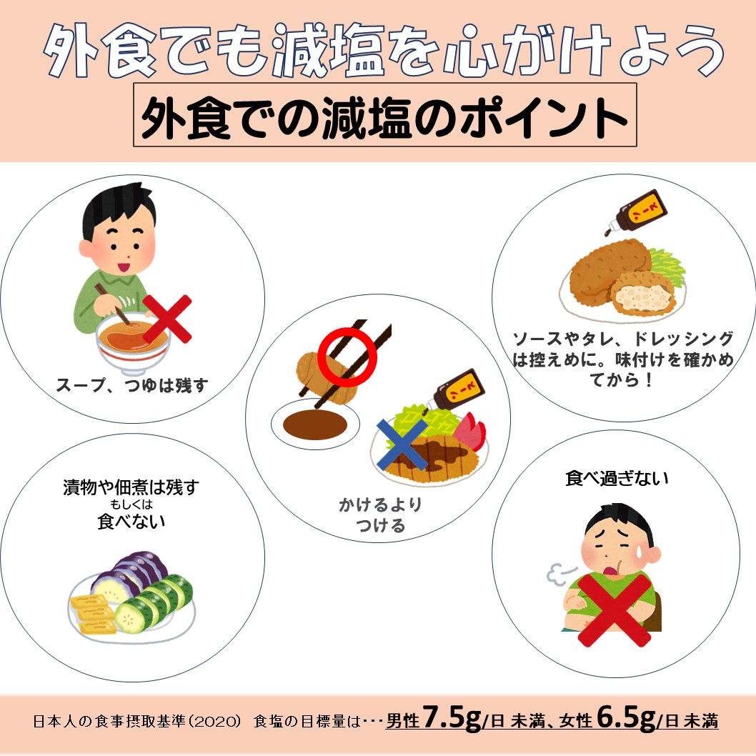年末年始。普段は外食をしないという方も外で食事を楽しむ機会も増えるのでは…外食は味が濃いものが多くみられますが、注文の工夫をして減塩を心がけましょう。015