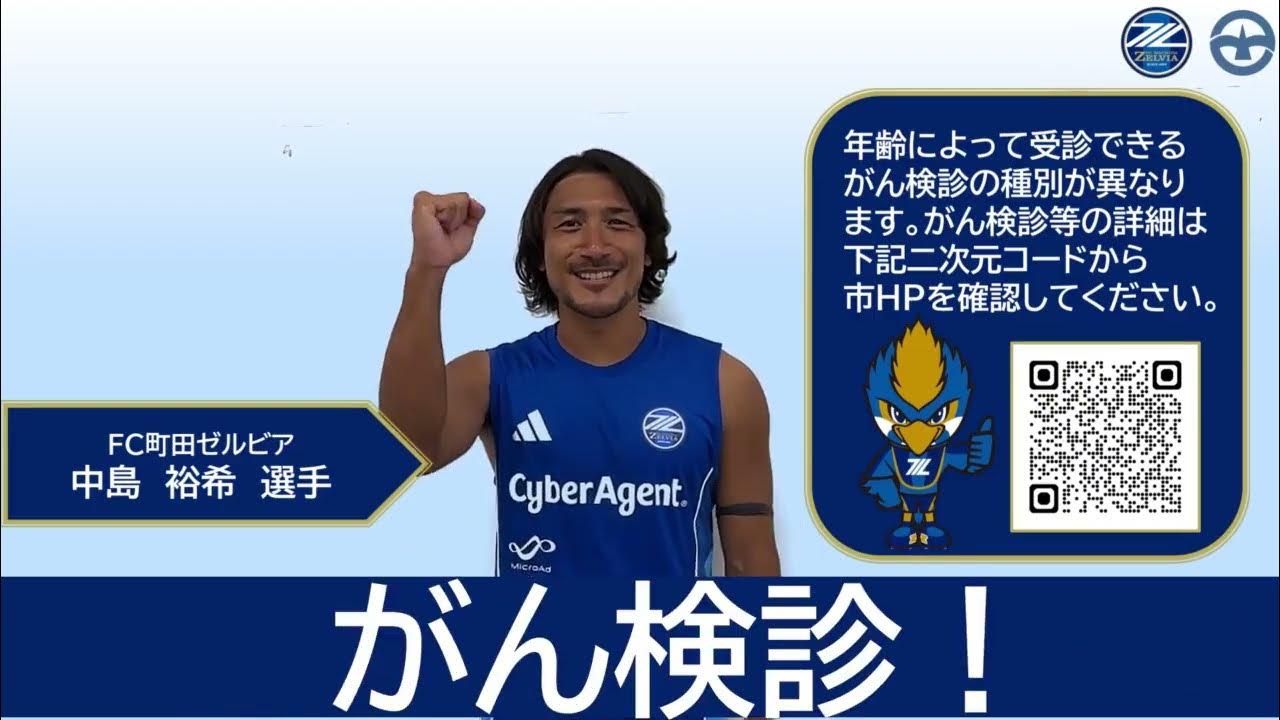 【内容】この動画は、健康のイメージが強いFC町田ゼルビアの選手から、健康で過ごすためにがん検診を受けてほしいというメッセージを伝える動画です。がんは日本人の2人に1人が診断されています。がん検診を受け..