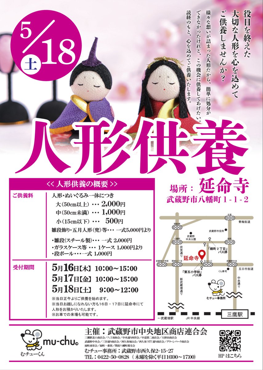 /感謝の気持ちを込めて人形供養しませんか\5/18に#延命寺にて#人形供養が執り行われます。当日は9時~12時まで受け付けしてくださるそうです。当日行けない方は、5/16、5/17でも事前に預かってく..