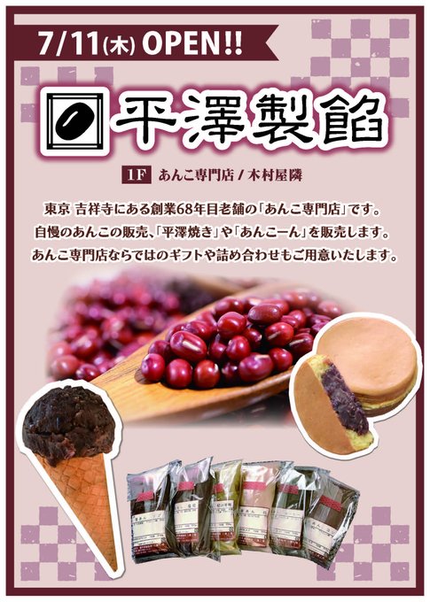 2024.7.11山形県鶴岡市にあるショッピングモールS-MALL、1階に平澤製餡を新規オープンすることが決定いたしました!こちらでは米粉で作った大判焼き【平澤焼き】をメインとした、あんこスィーツをお..