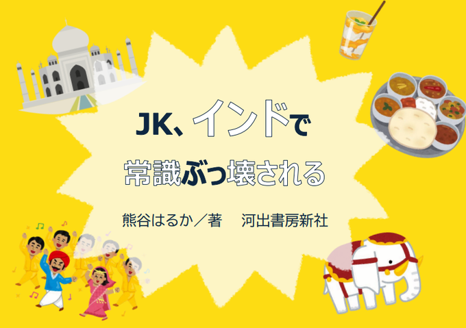 【吉祥寺図書館YA担当のひとりごと】「八月の頭、インドだって」母親からの一言で、華のJKライフ=インド生活と判明した主人公。高校生の作者の実体験が綴られたこの作品。生のインドが見えてきます。『JK、イ..