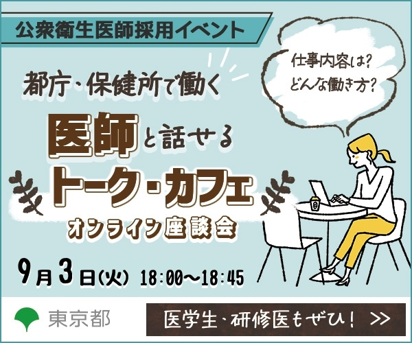 【#医師と話せるトーク・カフェ】#公衆衛生医師と話せるオンライン座談会を開催!仕事内容や職場の雰囲気は?など、気軽に話しませんか?日時は9/3(火)18:00~18:45公衆衛生医師の仕事に興味のある..