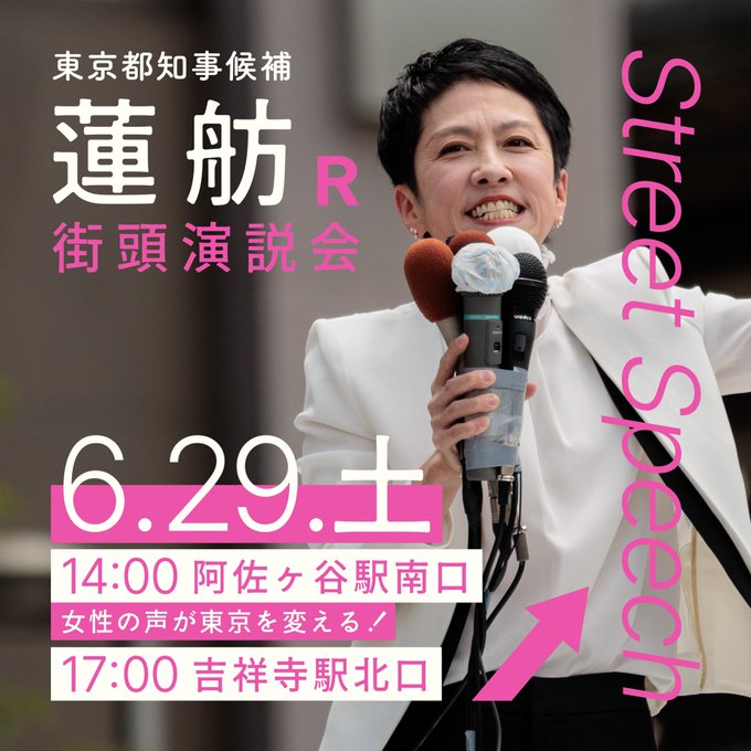 明日はついに蓮ちゃんが#吉祥寺へ!私も現地にいる予定です。ぜひ皆さん、ご参集ください。#1位じゃなきゃダメなんです#あなたと次の東京へ#蓮舫