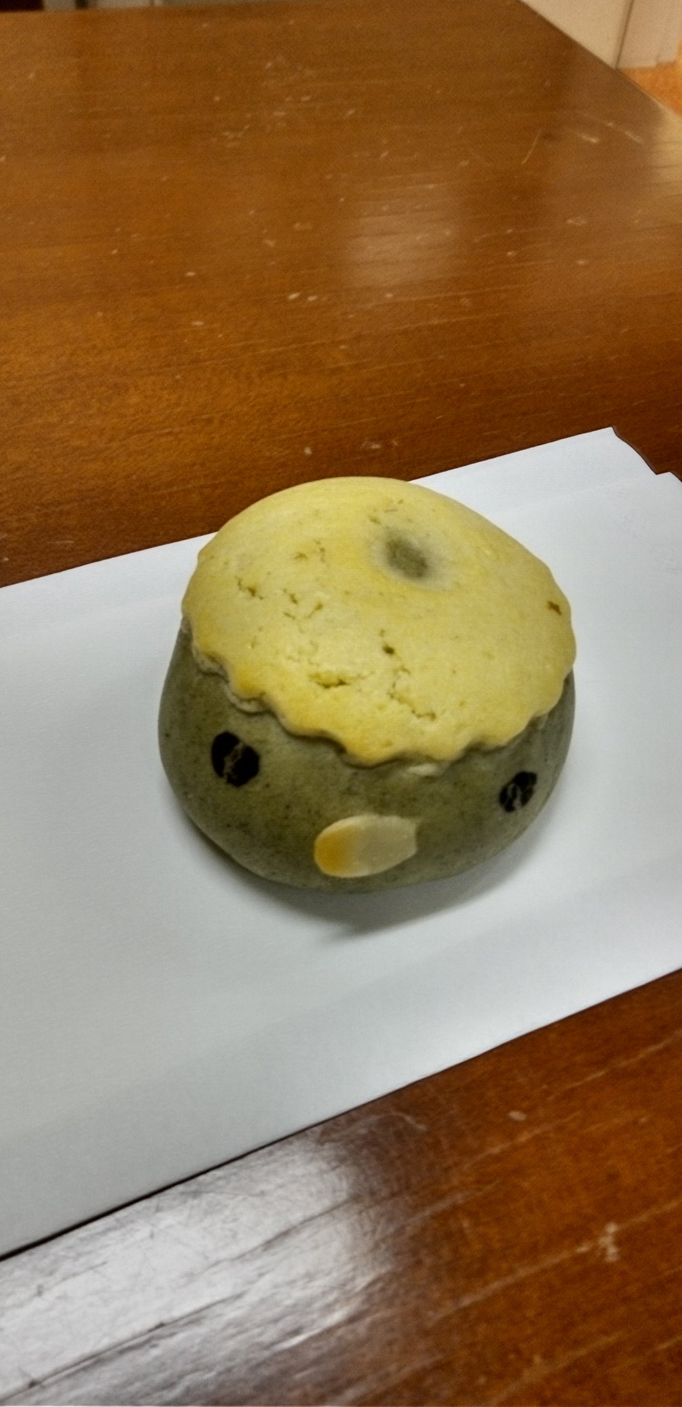 【#カッパのパン】これは何でしょう?カッパです。控室の机で写真を撮りました。7月2日、市役所8階のカフェで買ったカッパのパン。中に粒あんが入っておいしい私は、こしあんより、粒あんが好きです。