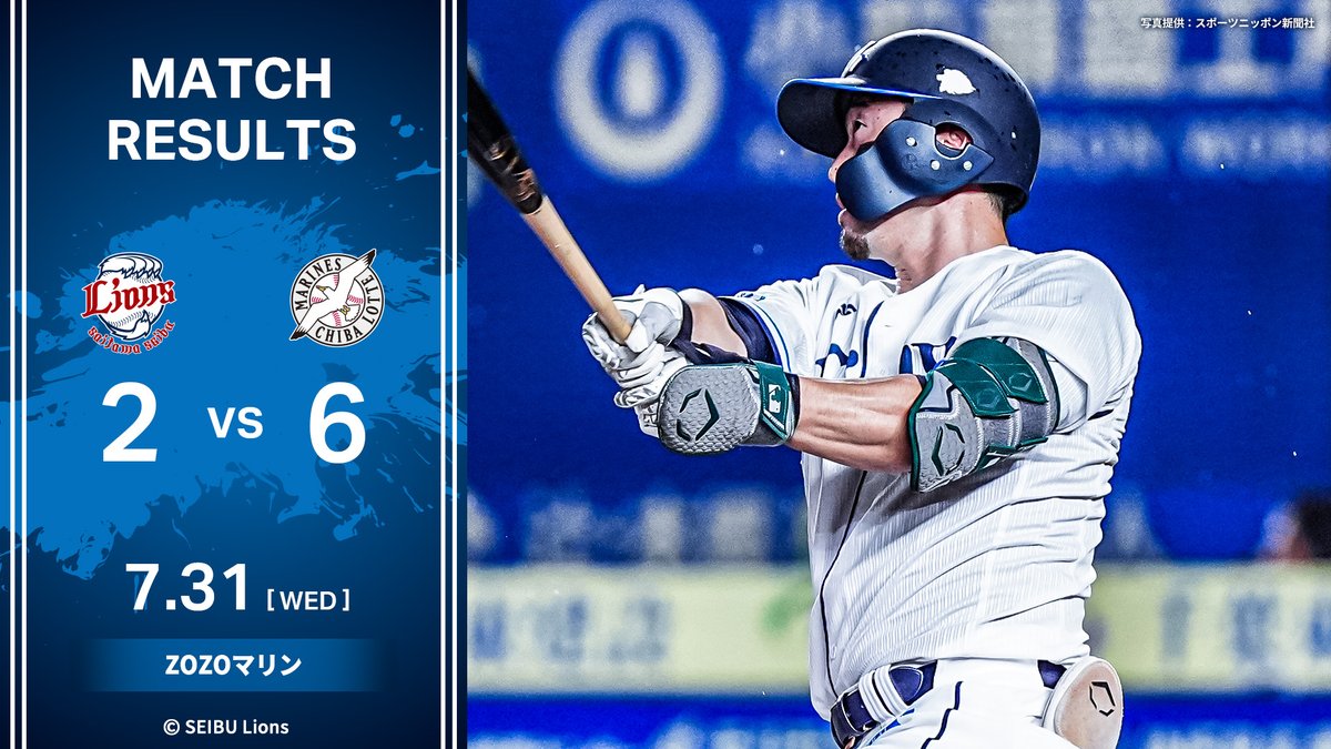 [7/31結果]L2-6M4点を追う6回、#外崎修汰選手の2点本塁打で点差を詰めます。しかし、追加点を奪われ再びリードを広げられる展開に。その後#松本航投手が無失点に抑えますが、追い上げとはいきません..