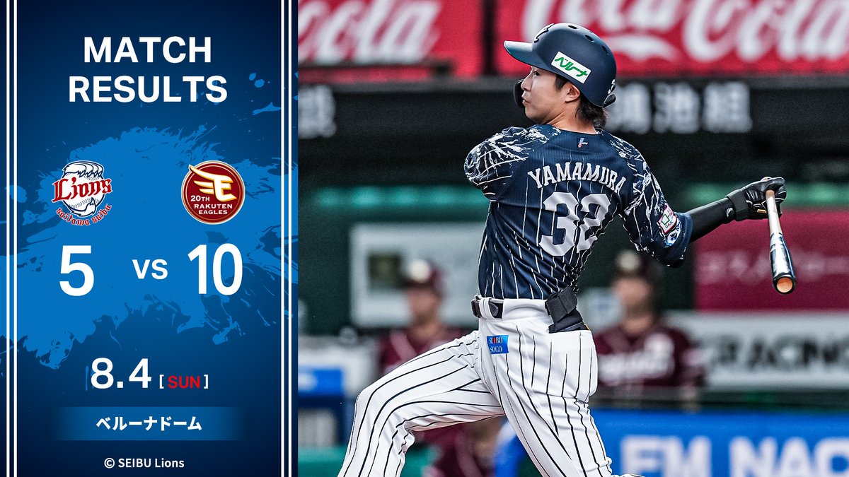 [8/4結果]L5-10E初回に#山村崇嘉選手の適時打を皮切りに3連打で3点を先取。しかし、その後逆転を許します。4回に#野村大樹選手の本塁打で1点を返しますが、7回に突き離されカード勝ち越しとはいき..
