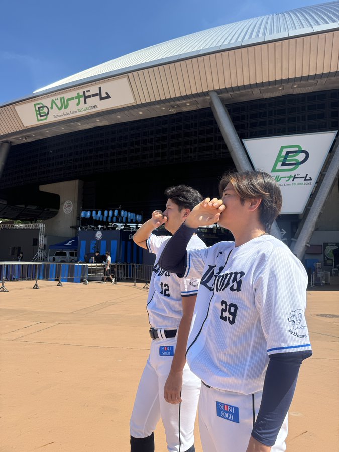 昨日の試合ではホームランを放った#野村大樹選手。「今日も気持ち切り替えてがんばります」と練習スタートです!#埼玉西武ライオンズ#seibulions#やる獅かない#ハントブルーユニ