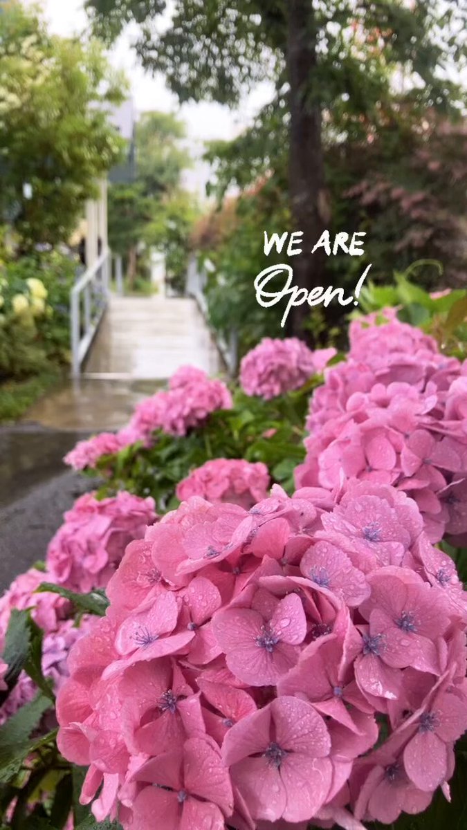 雨でももちろん営業中 雨に打たれる紫陽花が綺麗です♡ カフェや映画観てのんびりするのはいかが
