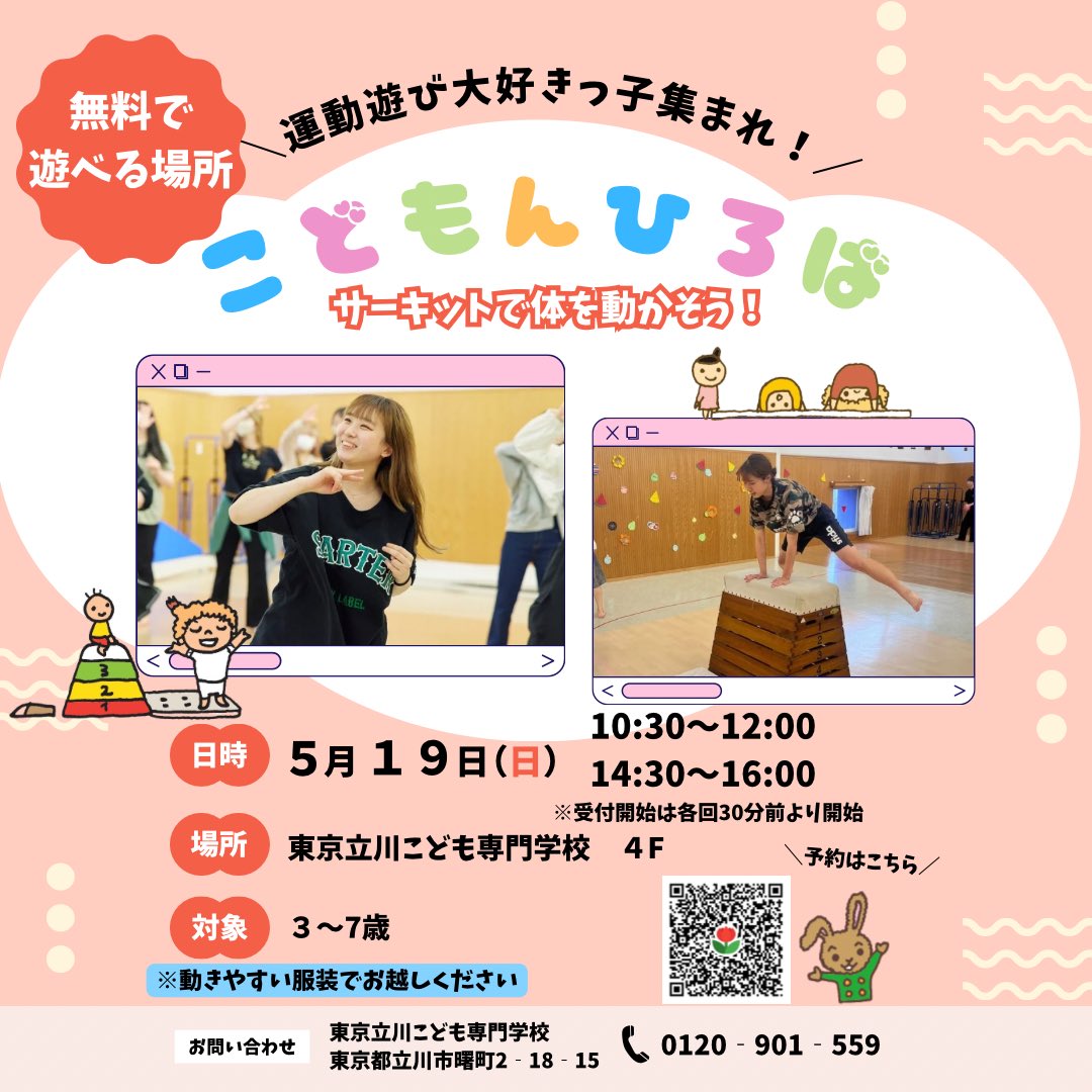【こどもんひろば📛】5月19日に開催するこどもんひろばのお知らせです-̗̀📣今回はサーキットをメインにリトミックなどの運動あそびを行います🌟立川市や近辺にお住まいの3歳以上のお子様がいる方ぜひご参加く..