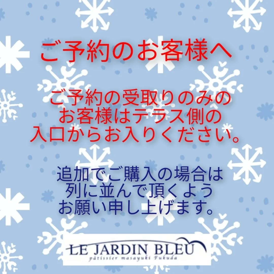 \何時も当店をご利用いただきありがとうございます/お菓子をご予約いただき受取りされるお客様はテラス側から直接に店内にお入りください。また引取と当日商品のご購入をされる方は、大変申し訳ございませんが、列..