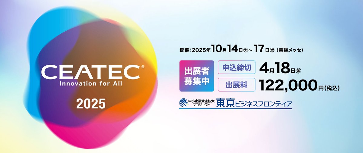 【出展料を一部補助!】#CEATEC2025出展者を募集中(有料:122,000円)『CEATEC2025』に共同出展しませんか。展示・装飾の標準装備、展示・商談サポート込で122,000円の低予算で..