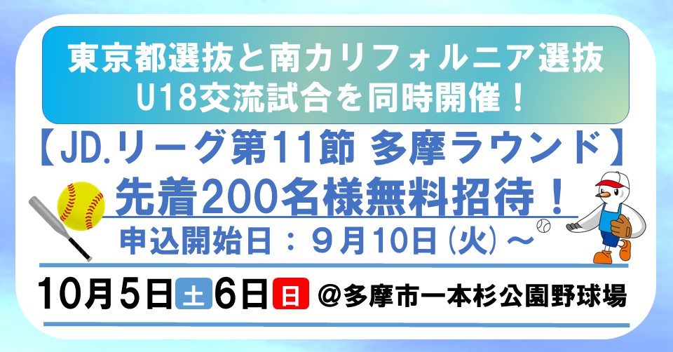 10/5(土)・6(日)は、女子ソフトボールで盛り上がろう!あのレジェンドが所属するチームの公式戦やU-18国際交流試合を都内で観戦するチャンス!イベントの先着申込は9月10日(火)10時よりスタート..