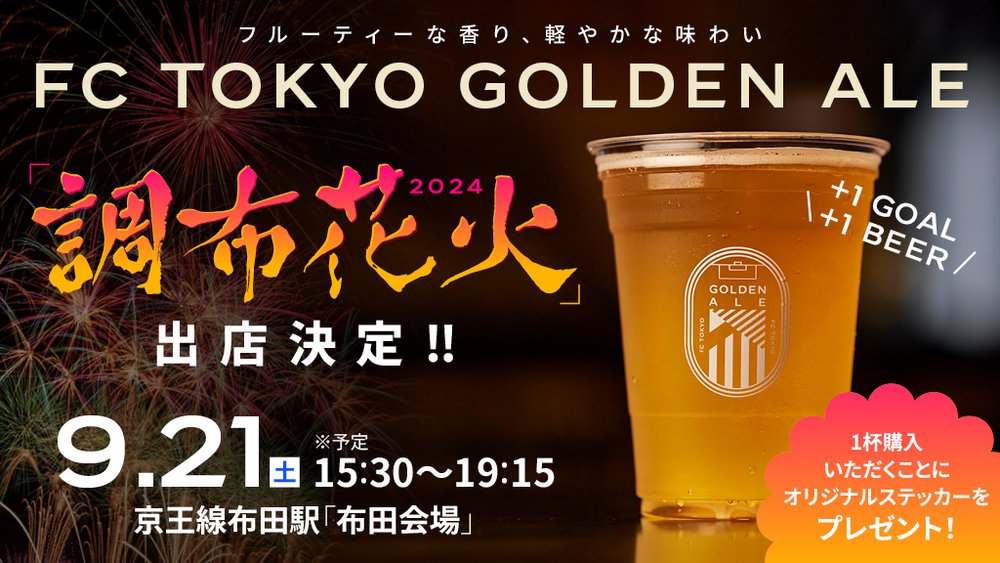 調布花火2024にFCTOKYOGOLDENALEが登場!!9月21日(土)に開催される【調布花火2024(第39回調布花火)】にて、FCTOKYOGOLDENALEを販売いたします!!https:/..
