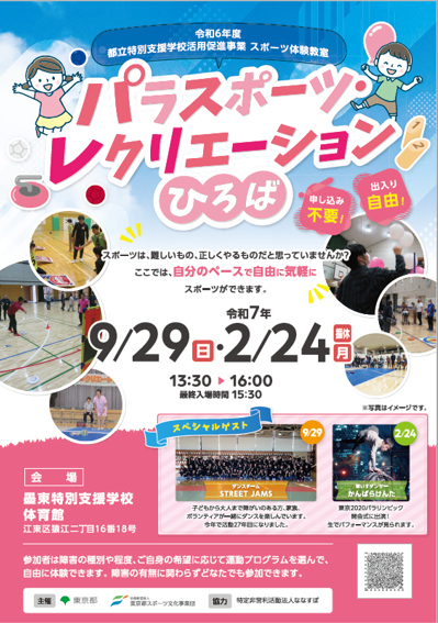 予約不要!入退場自由!自分のペースで自由に体験!パラスポーツ・レクリエーションひろばを開催します!・9月29日(日)13:30~都立墨東特別支援学校・10月6日(日)13:30~都立北特別支援学校文化..