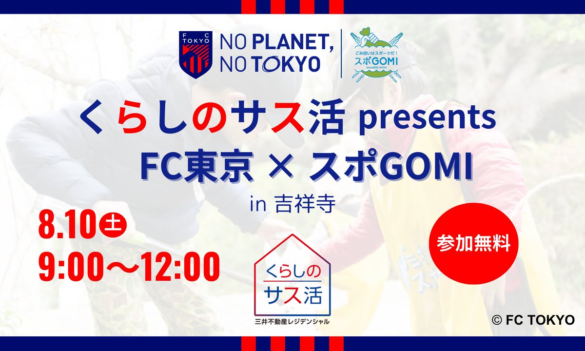 『NOPLANET,NOTOKYO』の活動の一環として、8/10(土)に『#くらしのサス活presents#FC東京×#スポGOMI』を開催!!https://fctokyo.co.jp/news/1..