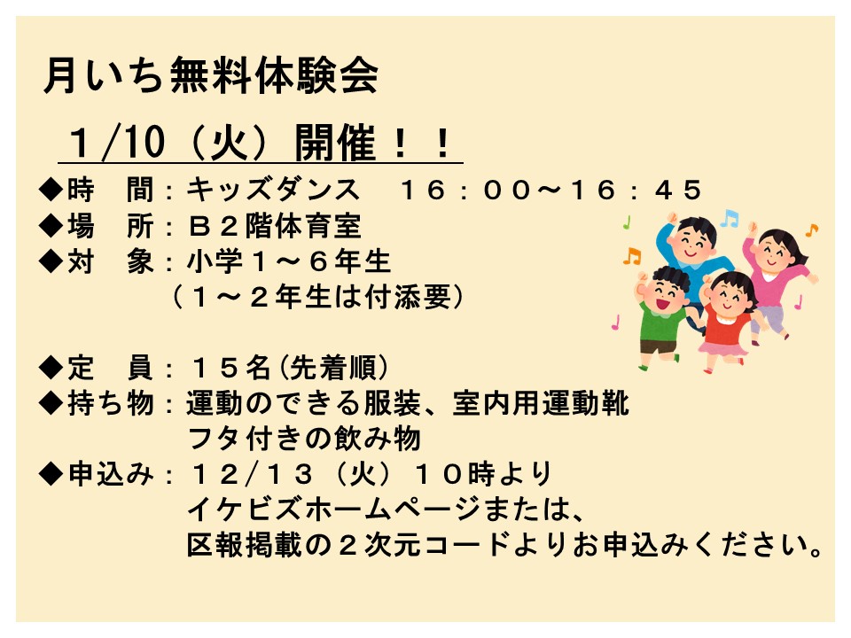 1/10(火)に開催される「月いち無料体験会」の詳細がとしま区報に掲載されました。