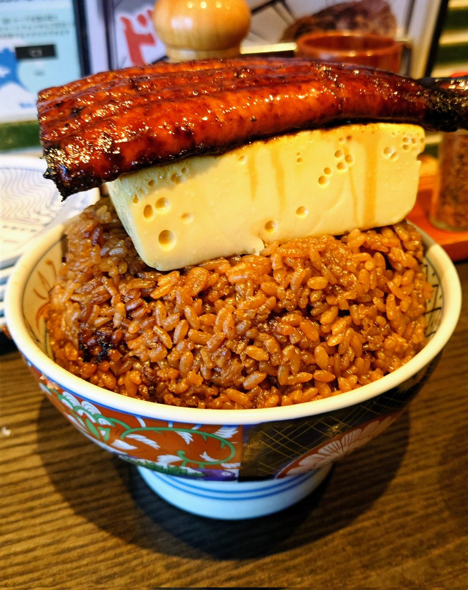 このビジュアルが気になり初訪問【いづも池袋店】ランチメニュー『鰻玉丼(ご飯750g)』😍小皿に鰻、卵と分けてから頂きご飯はタレで炊いた炊き込み😊鰻はふっくらと焼いて有りタレは甘くこのご飯には丁度良い味❤️麦炭酸2杯と鰻玉丼、結構普通に完食出来た自分にビックリ😅💦💦