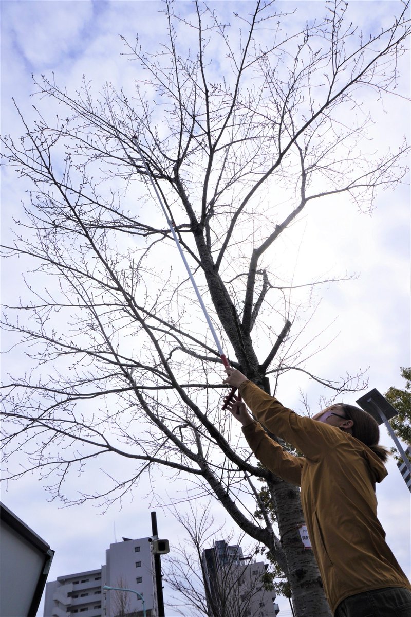 今年も樹木医T先生に、桜の元気度調査をして頂きます。今日はその準備のために、1本の桜から東西南北の枝を切りました。蕾や花芽の数を、明日ボランティアさんと調べます🌸
