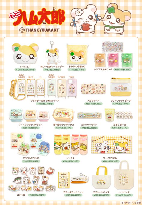 『#とっとこハム太郎』とのコラボアイテムが初登場します🐹🍀春らしく「ハム太郎のキャンプ」をテーマにしたサンキューマート限定の描き起こしデザインでの展開です💛
