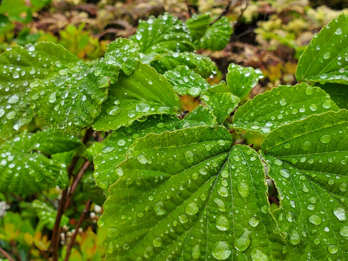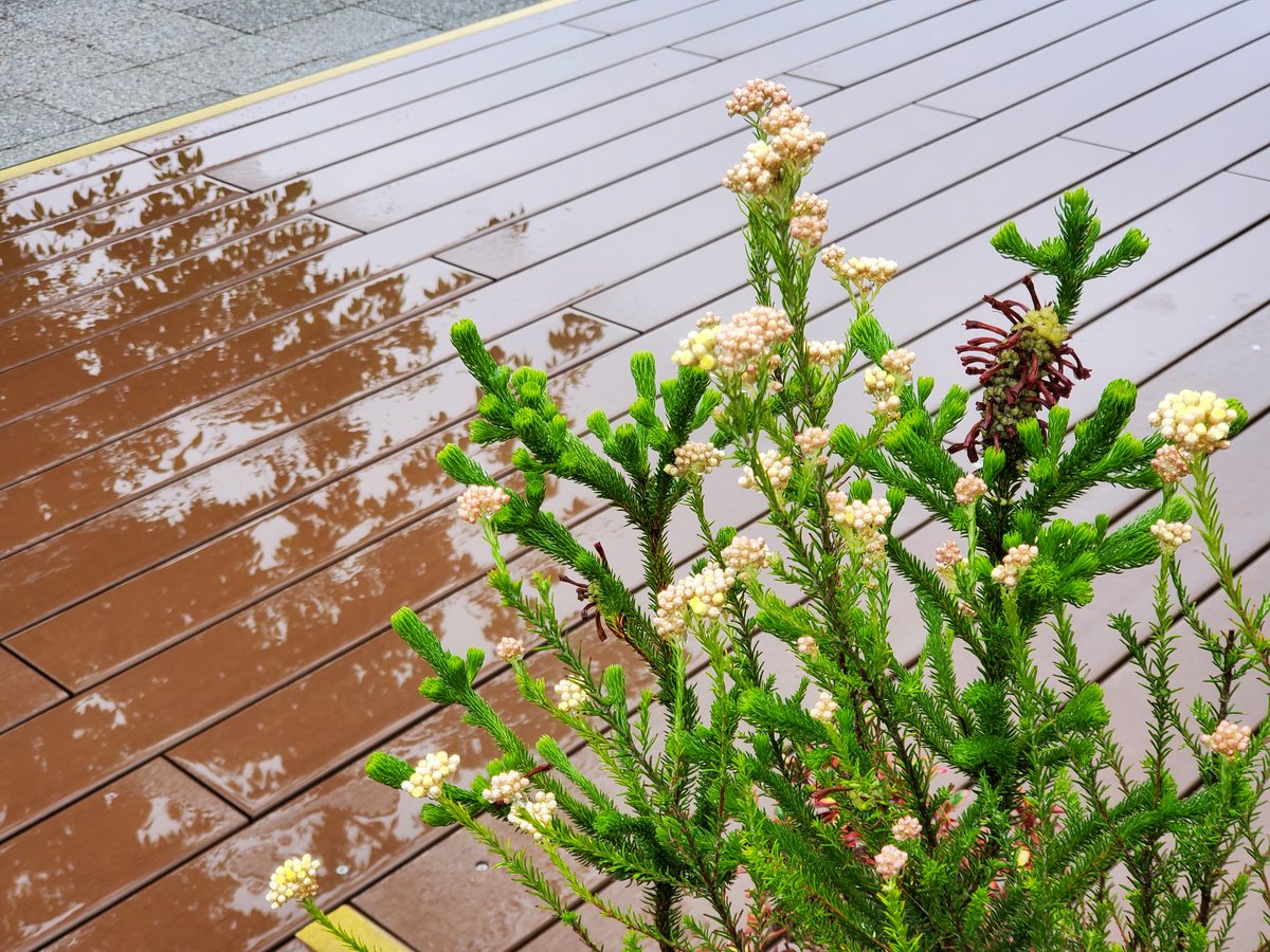 【雨の水曜日】 葉や花に雨粒が付き、流れたり揺れたりしています。雨の日の植物の観察は、いつもの違う楽しみ方が出来ますよ😉✨ #豊島区 #東池袋 #公園 #イケサンパーク