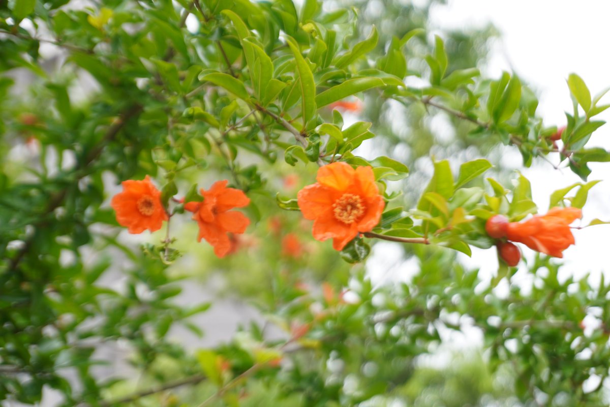 園内は只今23.0℃。初夏の花、ザクロが鮮やかなオレンジ色の花を咲かせ目を楽しませています。今年はたくさんの実ができそうです✨