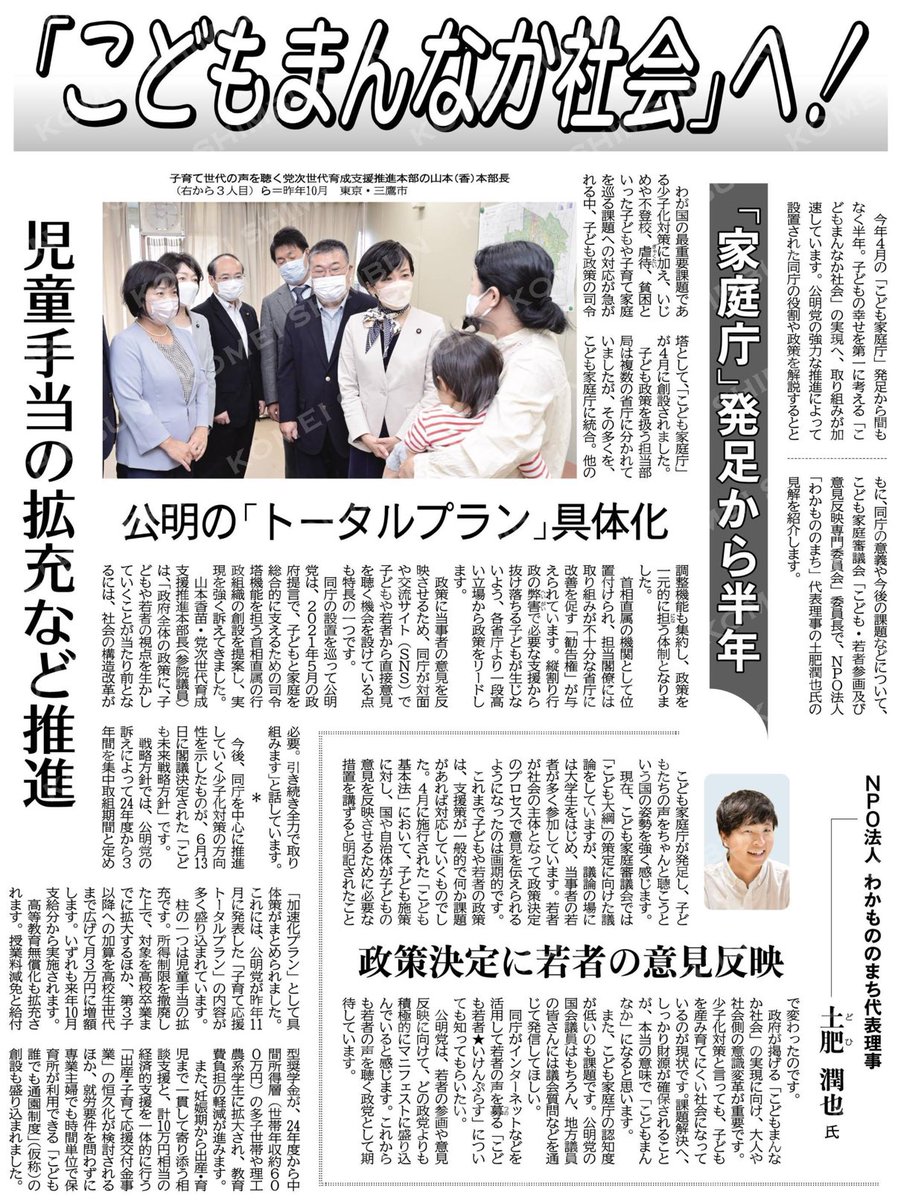 「こどもまんなか社会」へ!/「家庭庁」発足から半年 #公明新聞電子版 2023年09月17日付 www.komei.or.jp/newspaper-app/