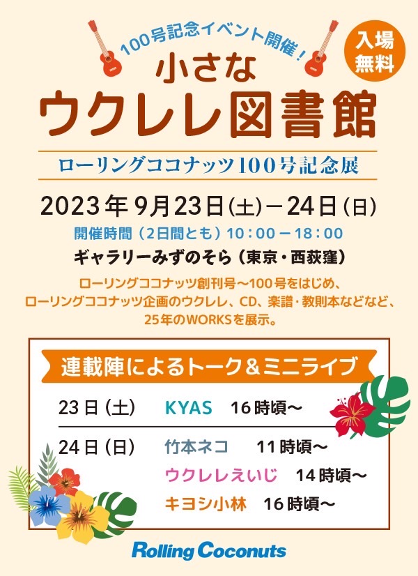 先日100号を創刊されたRolling Coconutsさんのイベントが今週末に開催されます〜♪お時間のある方、お近くに行かれた方はぜひ。ミニライブもあるなんて〜♪素敵なイベント♡