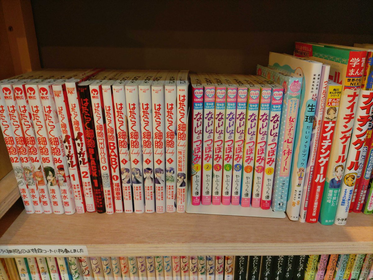 マンガピットには、学習まんがや『はたらく細胞』『ないしょのつぼみ』など揃っています。自分の体のことを、人に相談したり聞きにくいなあって思ったら、まずはマンガで読んで知れると心強いですよ💪