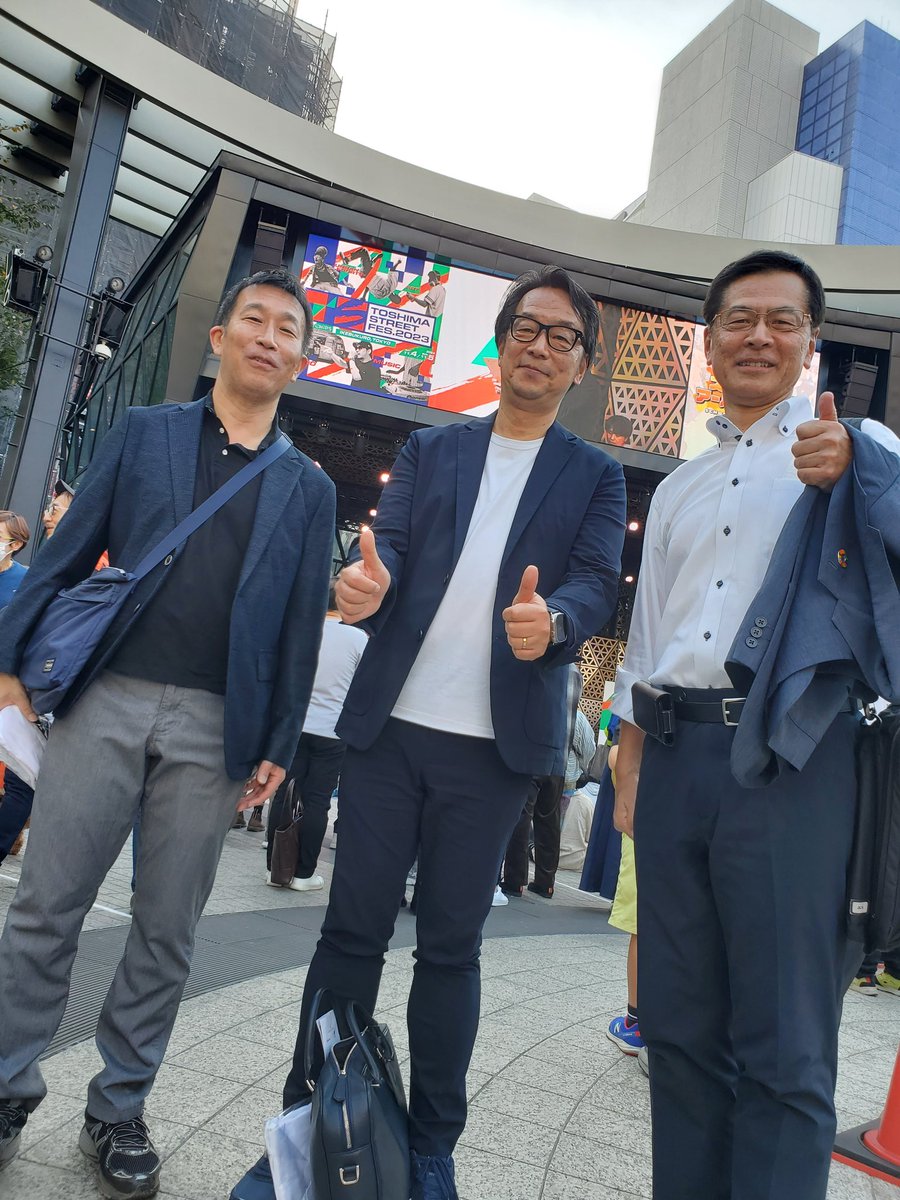 池袋西口公園グローバルリングで開催中のTOSHIMA STREET FES 2023に寄ってみました。ストリートパフォーマンスをDJ が紹介。観客はイスは使わず地べたに座って盛り上げるスタイル。丁度居合わせた渡辺会長と新たなストリートカルチャーで戸惑いながらも盛り上がりました❗