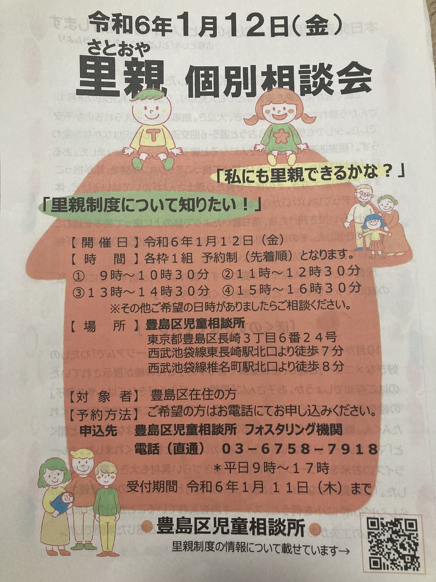 1月に里親個別相談会もあります。詳しくは写真でご確認くださいませ。