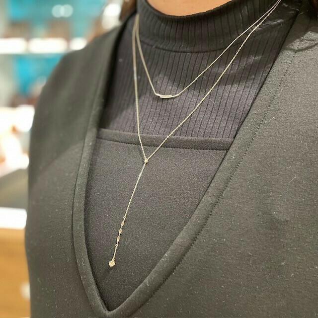 【西武池袋本店限定】のY字ネックレスは、長さ調整ができ、ボリュームニットとも好相性✨