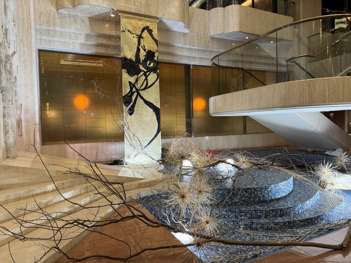 豊島区が「国際アート・カルチャー都市構想」として文化芸術活動を推進している中、ホテルロビーの装飾に現代アートとして高い天井を活かした、書道と植物とのコラボレーション作品を展示しております。躍動感ある筆づかいや新たな価値を与えられた植物たちのアートをお楽しみください。