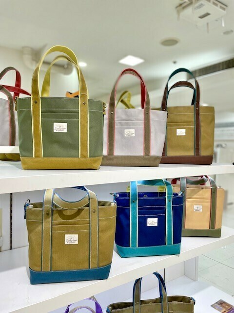 軽くて丈夫な国産帆布のトートバッグをつくるバッグ工房「Swell Dream(スウェルドリーム)」が期間限定出店。職人二人でひとつひとつ縫製している少量生産のバッグは、他にはないカラフルな配色が勢ぞろい💛
