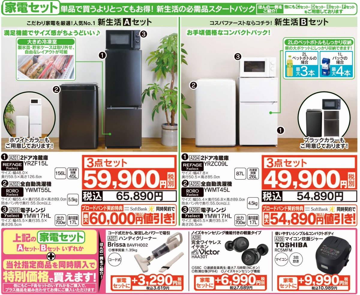 【3F・4F】 新生活にオススメ #冷蔵庫 #レンジ #洗濯機 の3点セット 色々なお部屋のデザインに合わせやすいモノトーンの白と黒でご用意しております。 単品で買うよりお得な価格でご案内中!!
