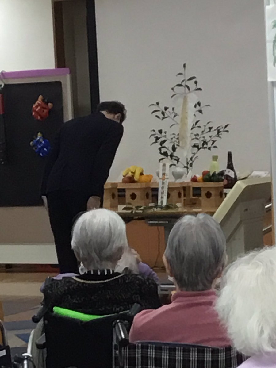 今日は、近所の『氷川神社⛩️』の宮司さんを招いて、今年の“祈願祭“を行いました。祝詞を挙げて戴き、理事長と利用者様の代表者に“玉串”を奉納して貰い、宮司さんの有難いお話の後皆さんで再礼し、無事終了しました。今年も安全安心に過ごせます様に❗️ #祈願祭 #氷川神社 #老健