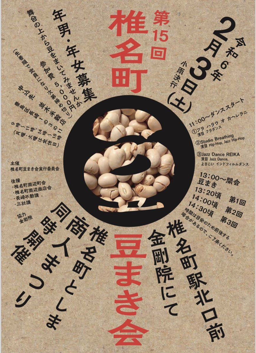 明日2月3日、#椎名町駅 #金剛院 にて #椎名町としま商人まつり #椎名町豆まき会 が開催。