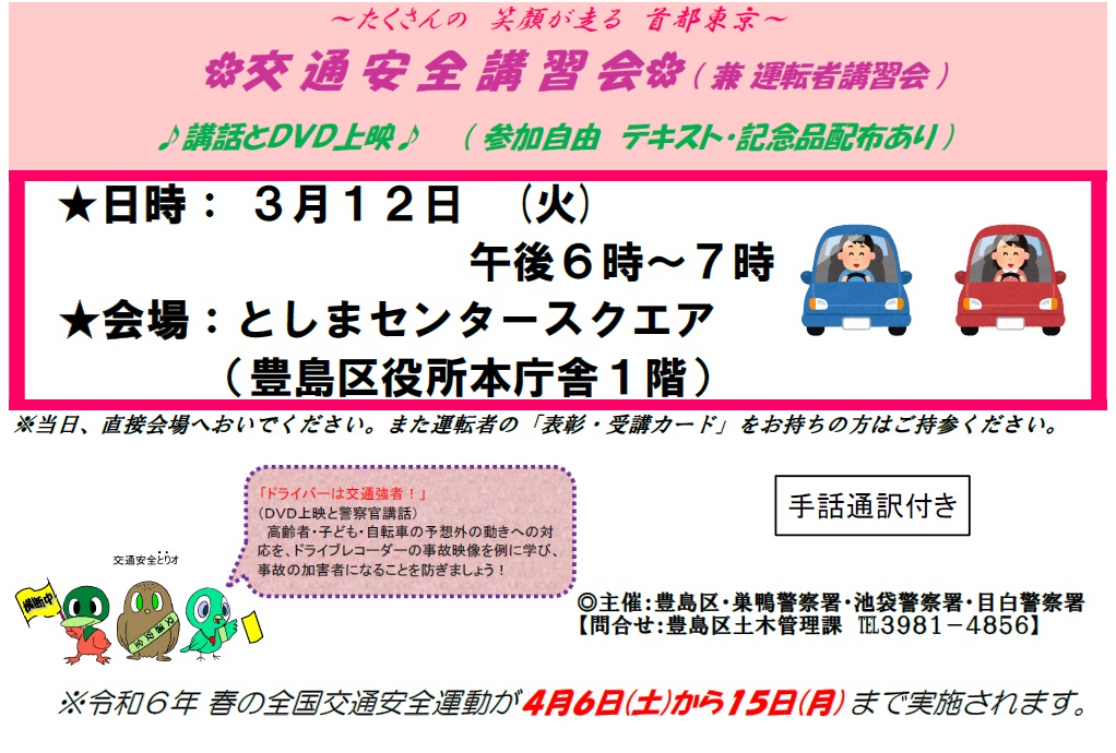 巣鴨・池袋・目白警察署と「交通安全講習会(兼運転者講習会」」を開催!