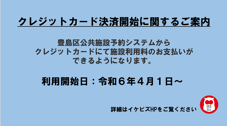 令和6年4月1日より、施設予約システムからクレジットカードにて施設利用料のお支払いができるようになります。