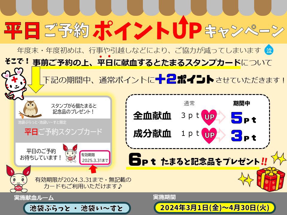 池袋限定のポイントカードは4月以降も継続中💳さらに今月末まで+2ポイント進呈中ですよ☺️✨