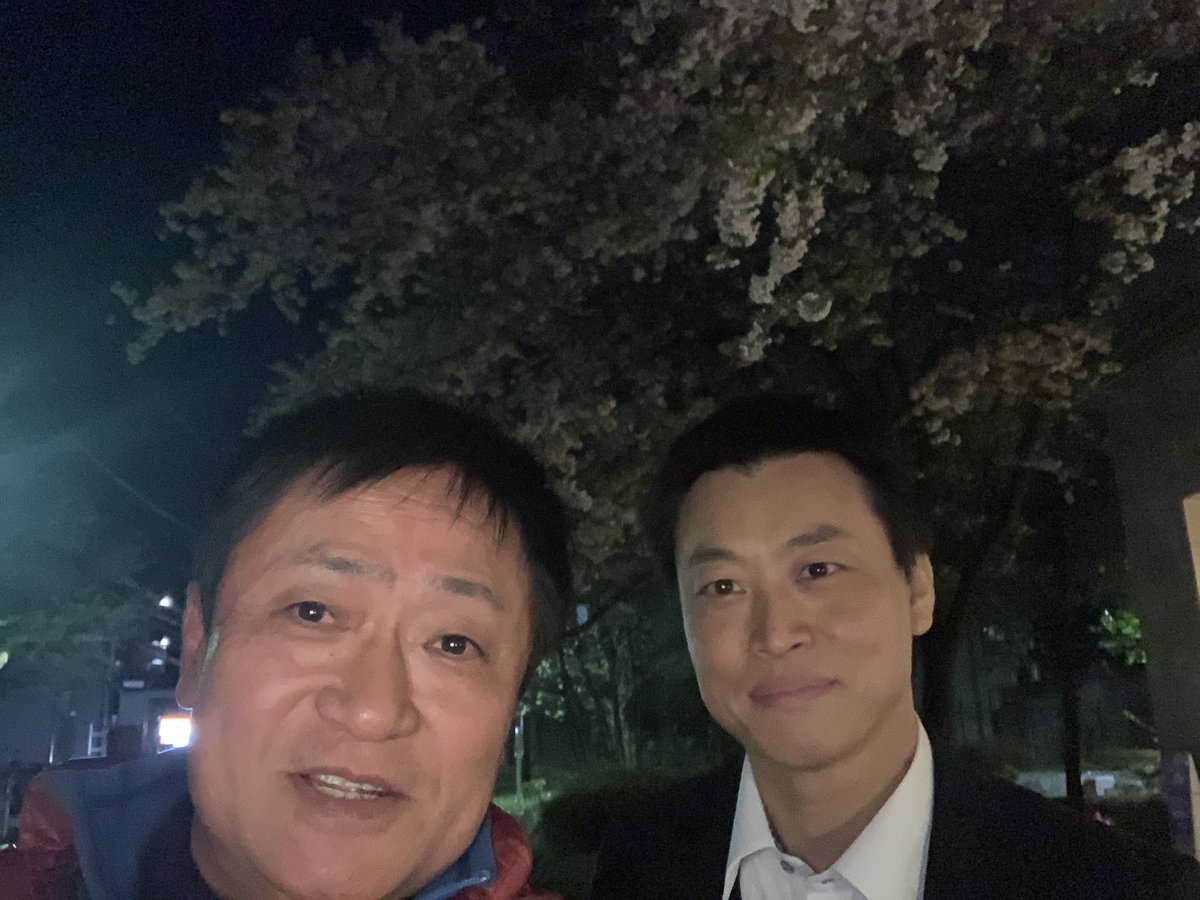 ひさしぶりの一杯は駒込の #和バル縁。 前回の都議選に葛飾から挑戦した #岩崎孝太郎 弁護士と。 今は地域のあれやこれやを共に取り組んでもらってて心強い。 お世話になってます。 帰りの夜桜の下でパチリ。