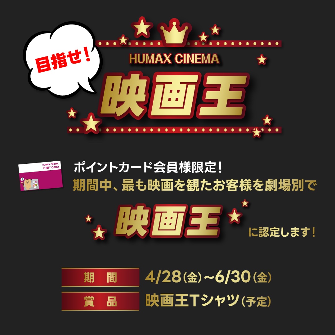 目指せ! \ヒューマックスシネマの映画王!/終了まであと3週間💨💨 #ヒューマックスシネマポイントカード会員様限定【👑映画王決定戦👑】🎞️期間(2023.4.28〜6.30)#池袋HUMAXシ..