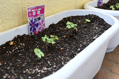 【#緑のカーテン】種をまいた#朝顔が、ちょこんと発芽しました!大きく育つことを楽しみに、毎朝お水をあげています🌱#豊島区#千早#グリーンカーテン#あさがお000
