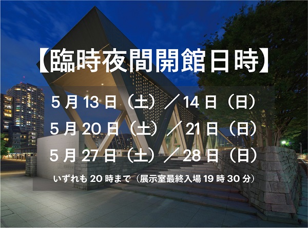 #東京都現代美術館 は今週末5/13(土), 14(日)、20時まで臨時夜間開館を実施します。「クリスチャン・ディオール、夢のクチュリエ」展チケットは当日券販売状況を必ずご確認の上ご来館ください。同時開催展はご予約なしで入場可能です。